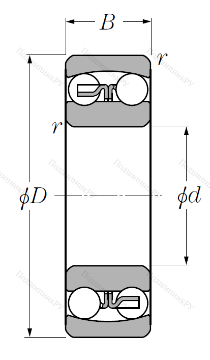 Конструкции этого типа, производящиеся фирмами FAG, KOYO, NSK, SKF, SNR, имеют два ряда шарикоподшипников, внешнюю выпуклую шину и внутреннюю обойму, в которой находится монтажное цилиндрическое отверстие. Воспринимают радиальные и осевые вектора приложения, включая двустороннюю нагрузку по оси (она не должна превышать 20% от лучевой).