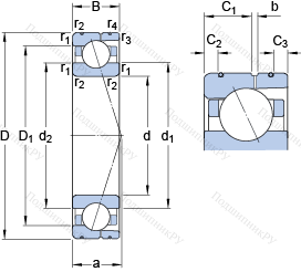 | Диаметр шарика | Dw | 25.4 | mm | |